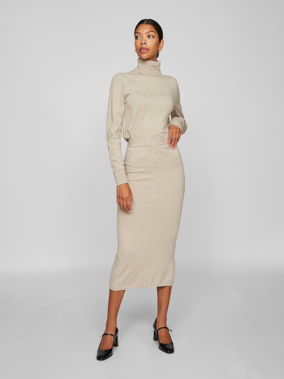 VICOMFY MIDI KNIT SKIRT/PB er et stilrent strikkeskjørt som kombinerer komfort med en moderne look. Laget av LENZING™- og ECOVERO™-viskose, gir dette skjørtet en lett og myk følelse, perfekt for hverdagsbruk.
