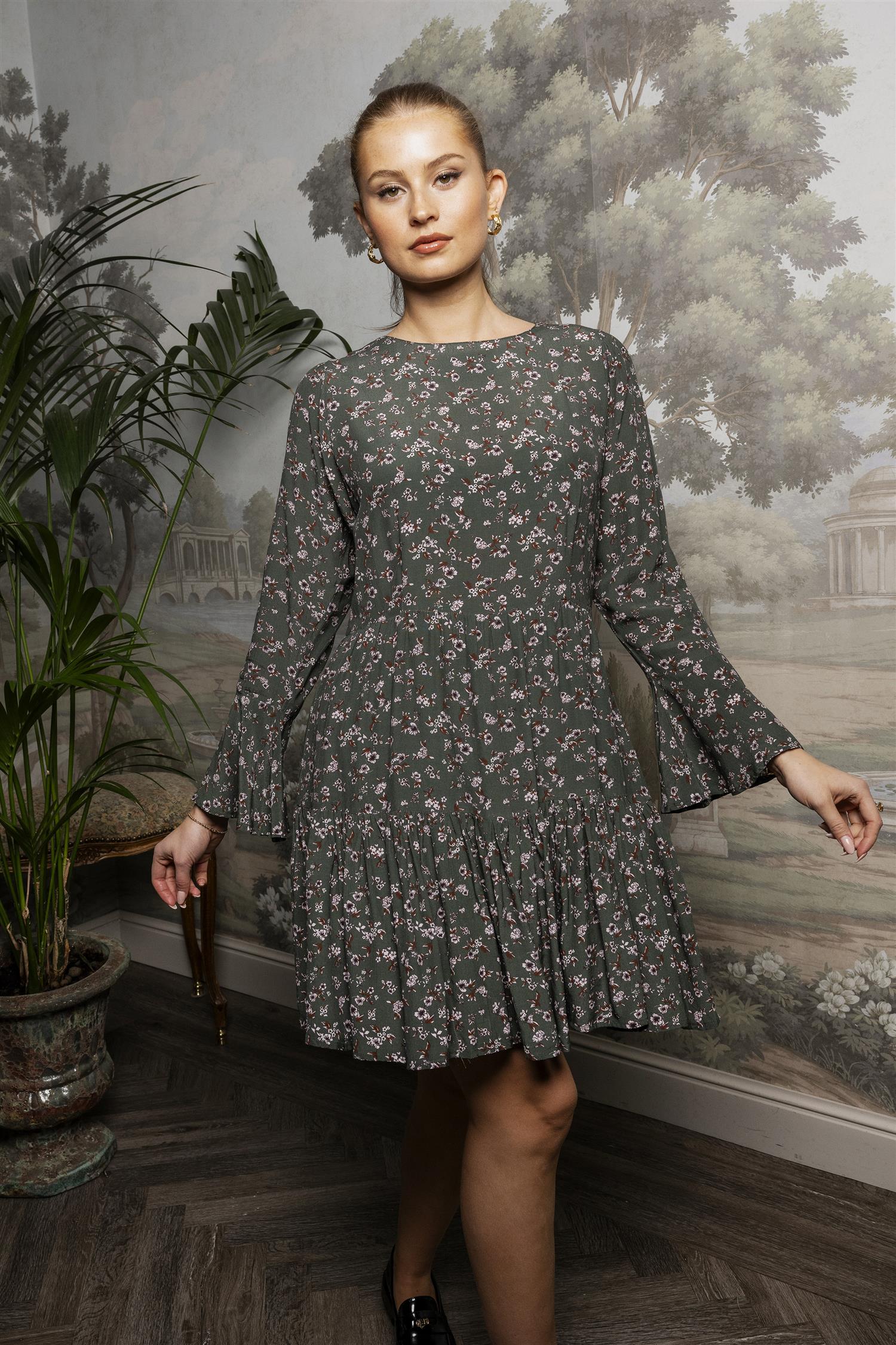 Gigi Dress Bloom er en elegant kjole laget av 100% viskose mosscrepe, perfekt for en sofistikert stil. Den lette og luftige kvaliteten gir en behagelig følelse, samtidig som den gir en vakker drapering.