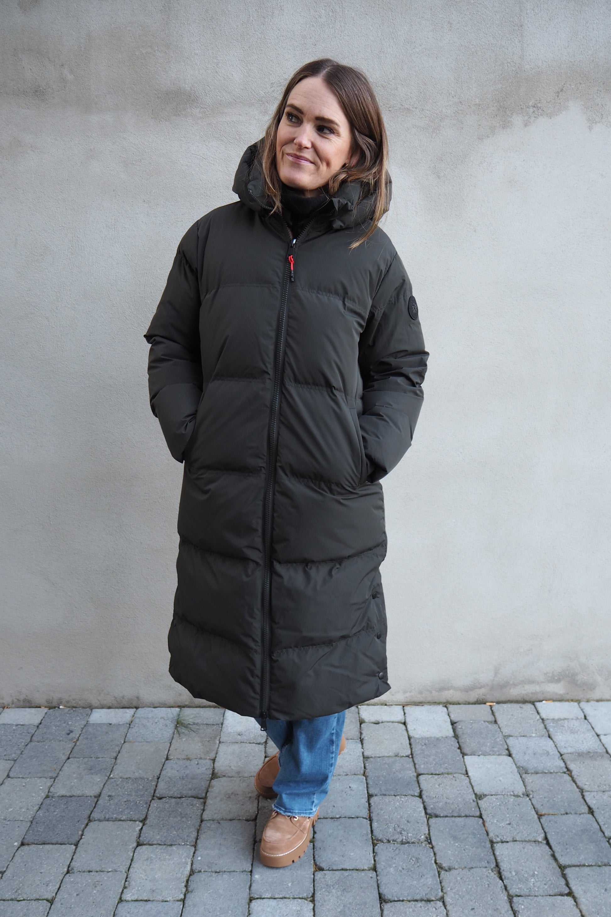 Ladies Down Jacket fra Vannucci er et must-have i jakke-garderoben! Jakken har lang lengde, og rett modell. Jakken har lommer i siden, og en toveis glidelås. Jakken har en kombinasjon av dun og polyester fyll, noe som gjør den god og varm. Den har en vannsøyle på 10.000 mm, noe som betyr at jakken er vanntett.
