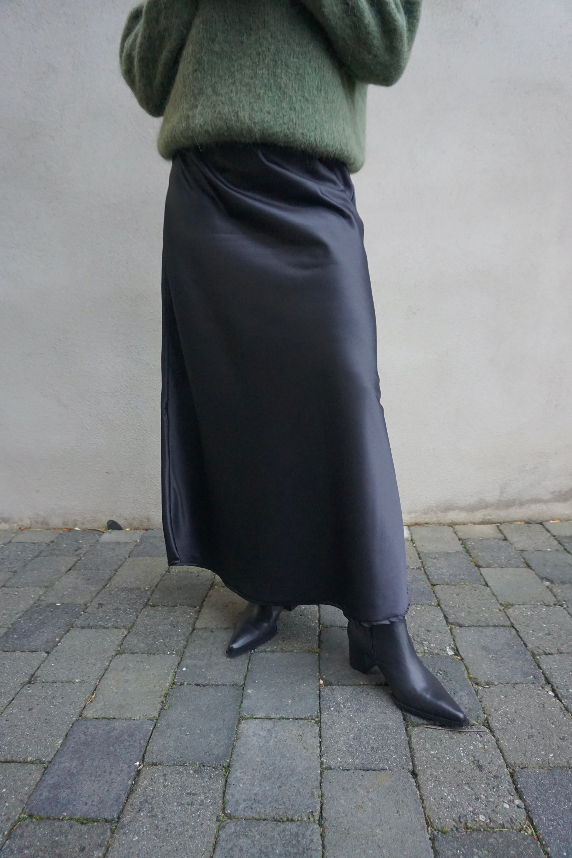 Dette elegante satengskjørtet fra Massimo kombinerer klassisk stil med moderne komfort. Skjørtet har en vakker satengfinish som gir en glatt overflate og en subtil glans.