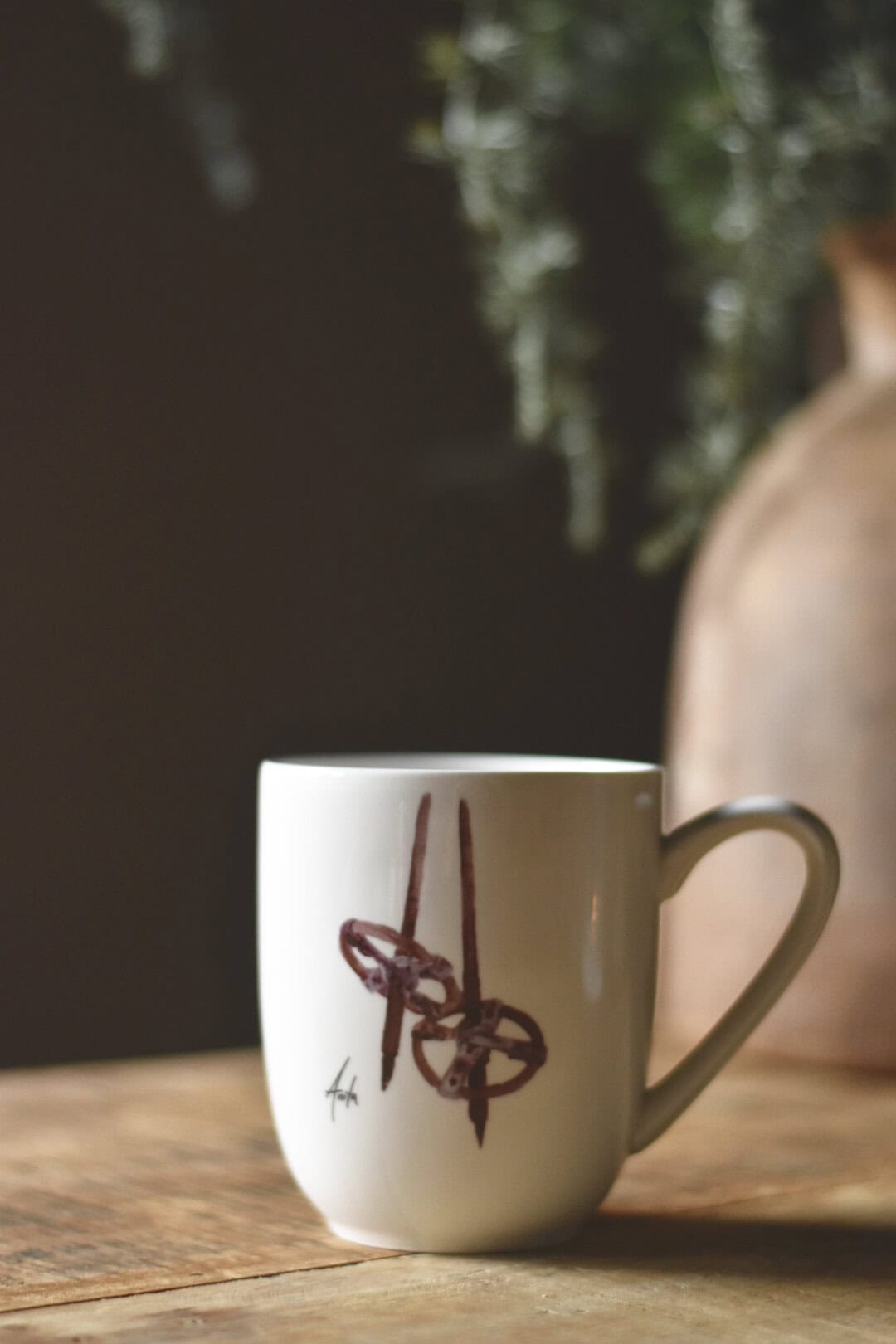 Dette stilfulle kruset er prydet med et vakkert vintage-inspirert motiv av klassiske skistaver, og bringer en følelse av nostalgisk fjellidyll til morgenkaffen eller ettermiddagsteen. Designet er perfekt for skientusiaster og de som elsker den tidløse sjarmen av vintersportens historie.