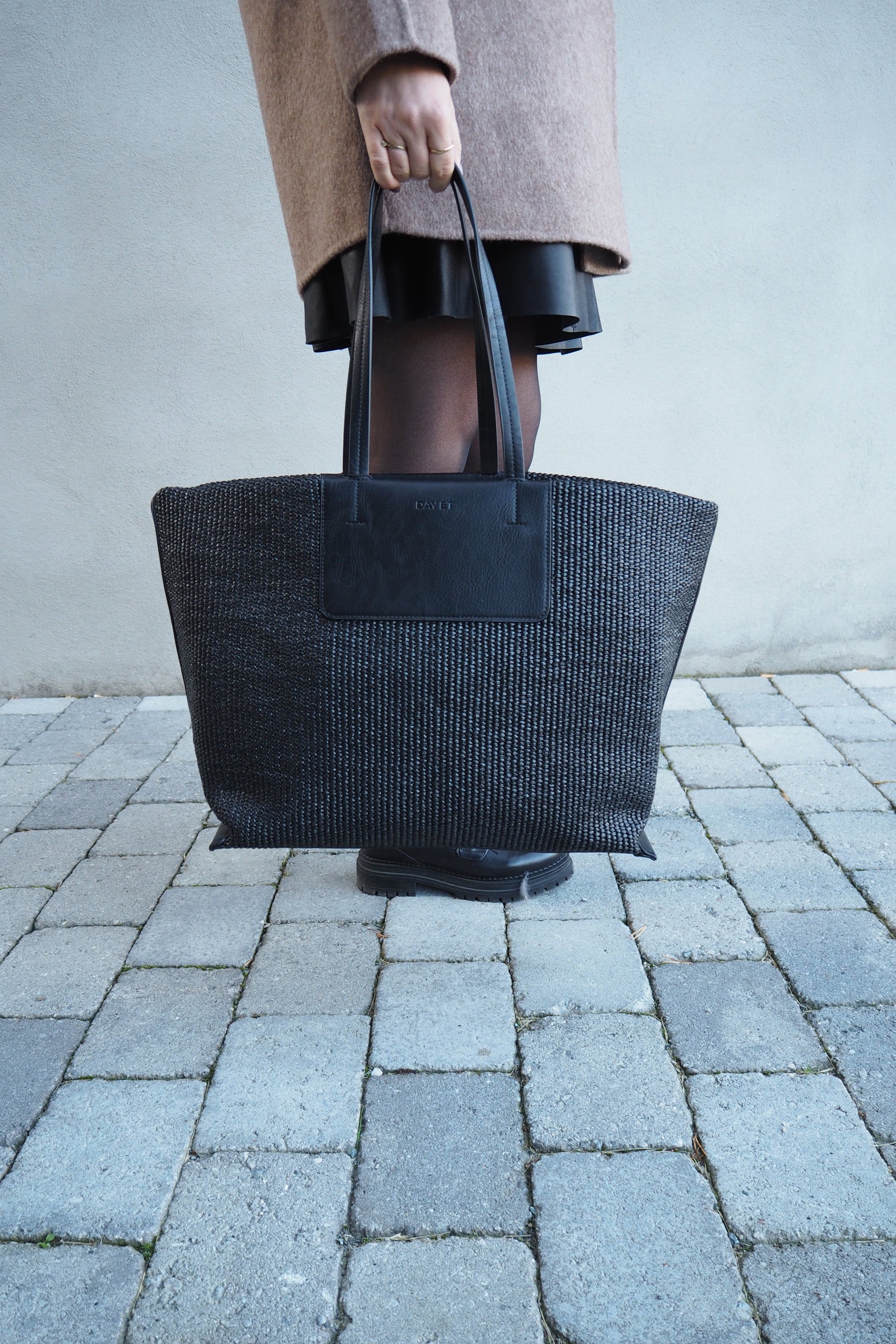 Denne stilige vesken kombinerer et vakkert flettedesign med eksklusive detaljer i skinnimitasjon. Den åpne modellen gir enkel tilgang til alt du trenger, mens to innvendige lommer holder småtingene på plass. Hovedrommet er romslig nok til en laptop, og de komfortable skulderstroppene gjør den perfekt for både jobb og hverdagsbruk. En tidløs favoritt du alltid kan stole på!
