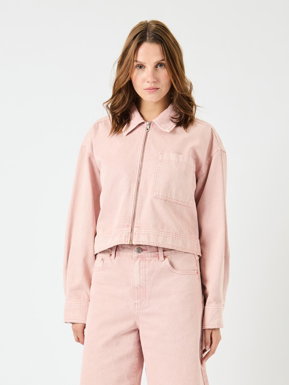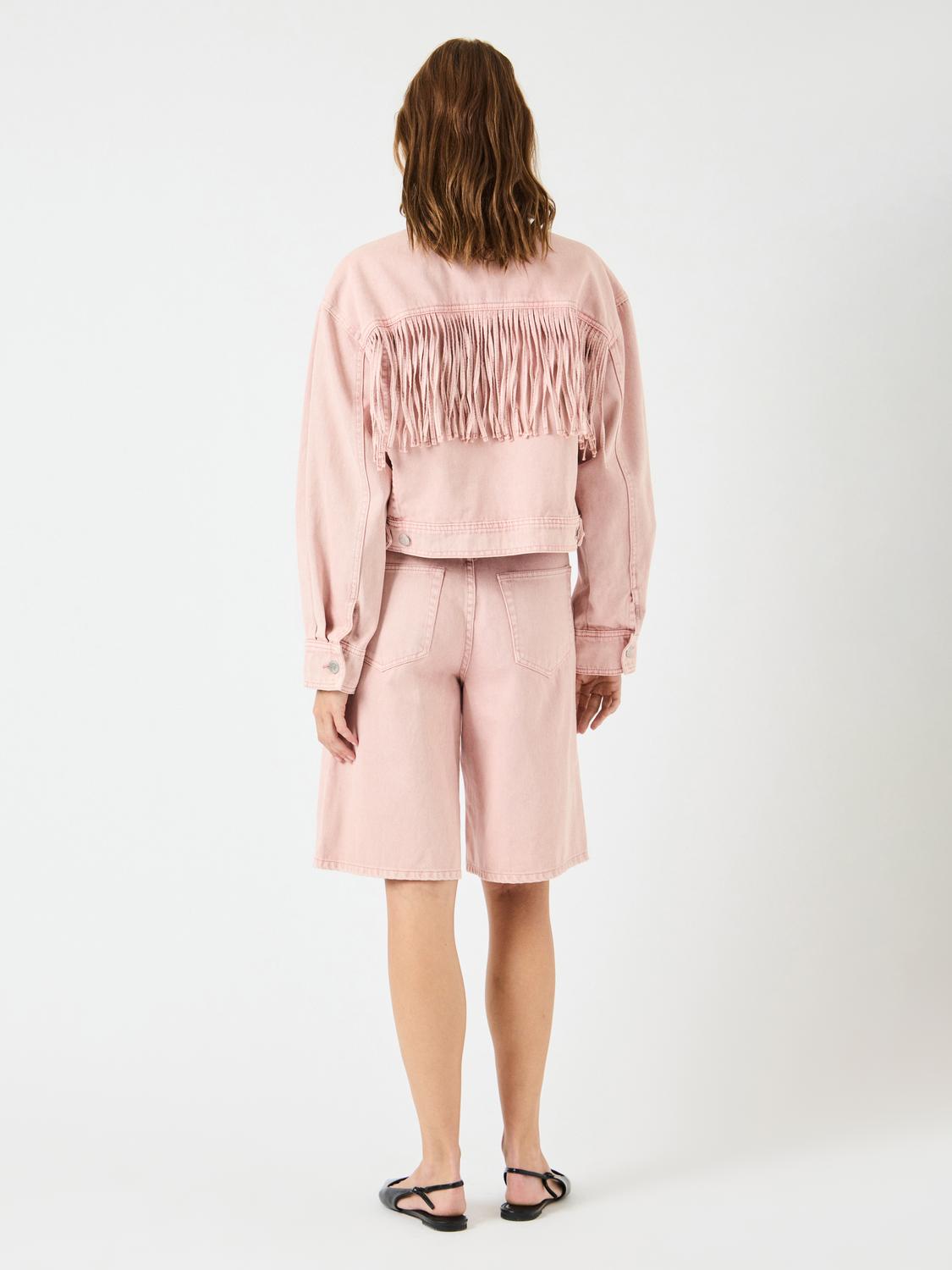 Gi garderoben din et friskt pust med YASSUN LS CROP DENIM JACKET S. - FEST. Denne trendy jakken i mellomlilla er laget av et pustende bomullsstoff, perfekt for å tilføre stil til antrekket ditt.