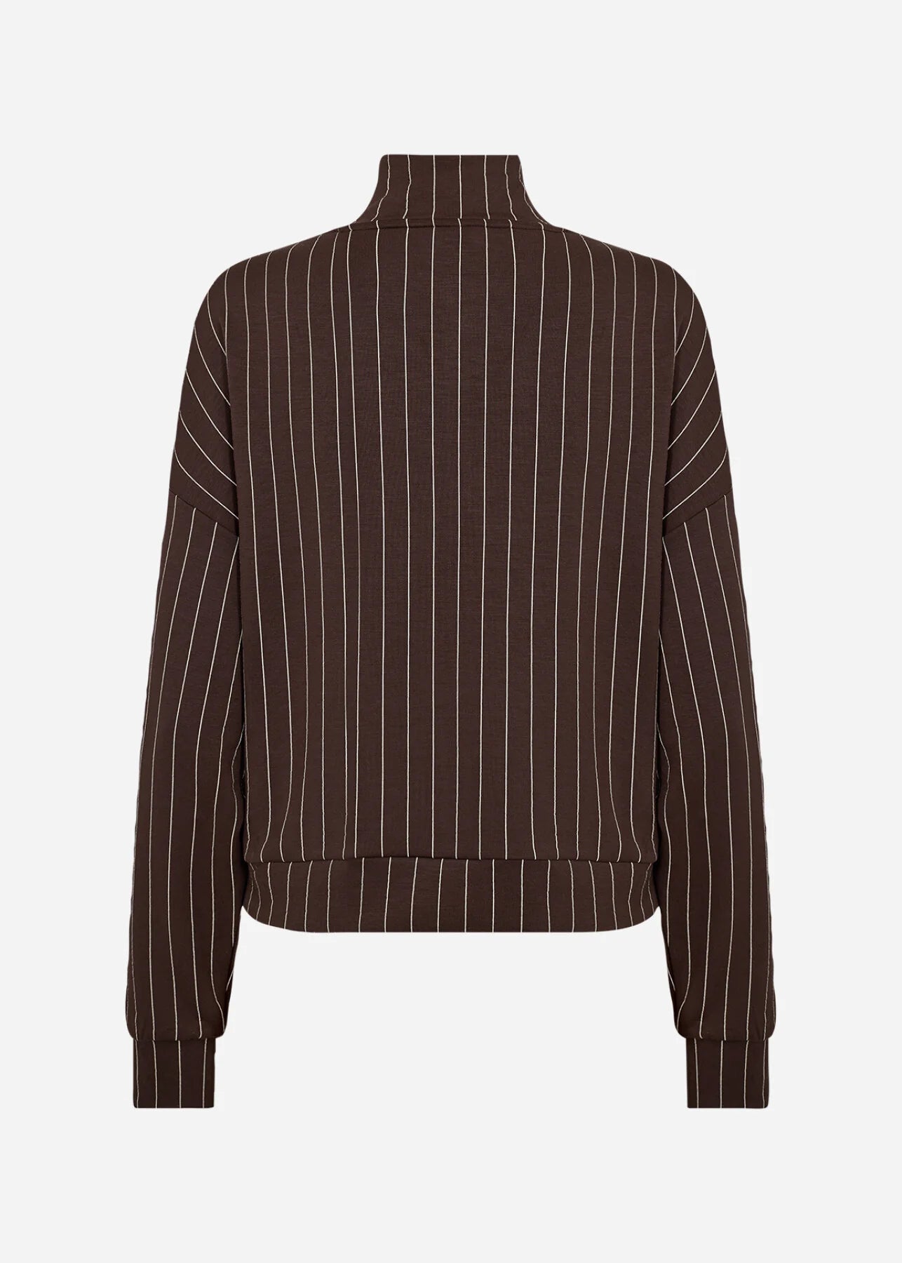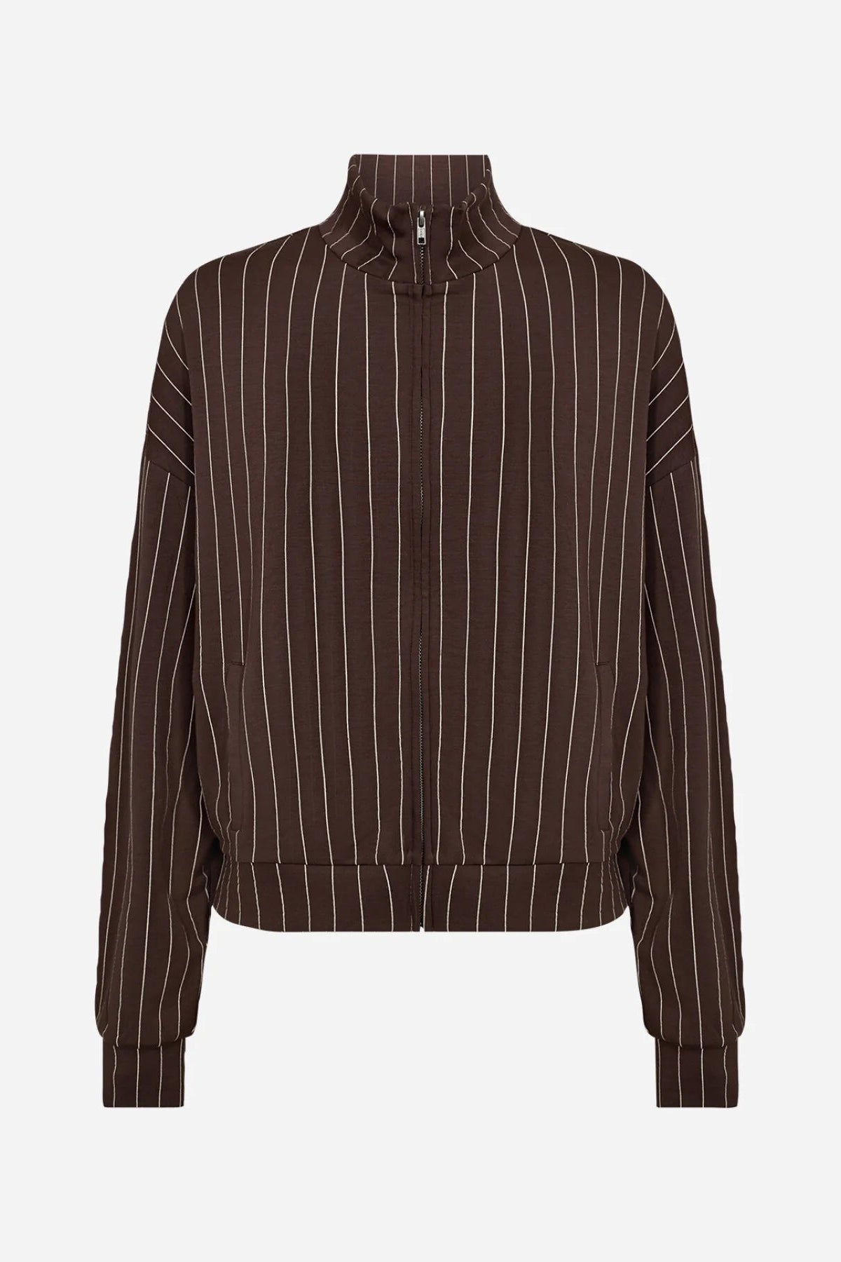 SC-SIRI 2 er en jakke laget av en blanding av 48 % modal, 48 % polyester og 4 % elastan. Den har høy krage, glidelås og et klassisk pinstripemønster. Kombiner den med skreddersydde bukser for et elegant utseende eller med jeans for en avslappet stil.