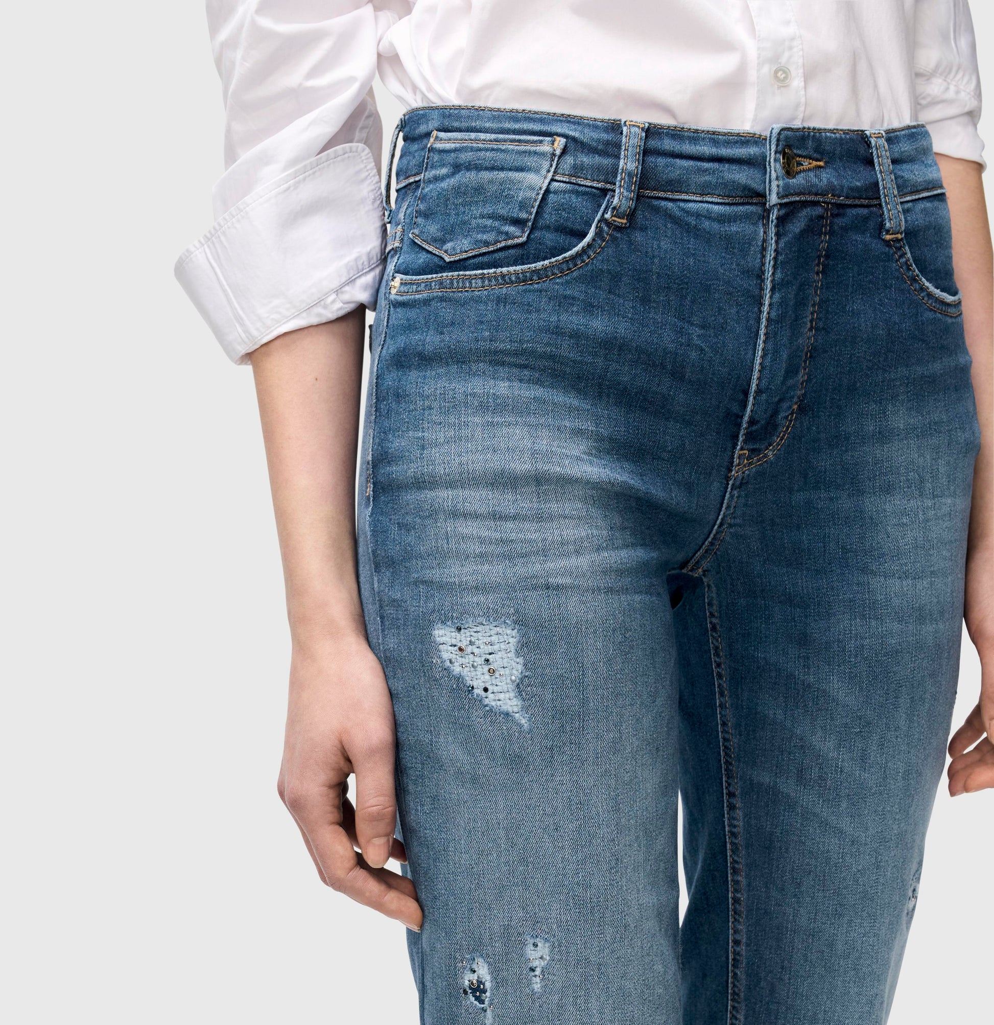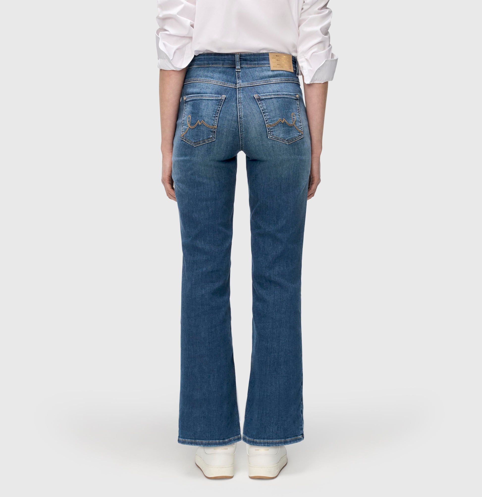 Denne buksen kombinerer klassisk denim med en moderne og glamorøs vri. Med en flatterende flared fit og bootcut-fasong får du en smal silhuett gjennom lårene, som elegant går over i en utsvingt benavslutning. Den høye, komfortable midjen gir et sofistikert uttrykk og en figurformende effekt som sitter pent hele dagen.