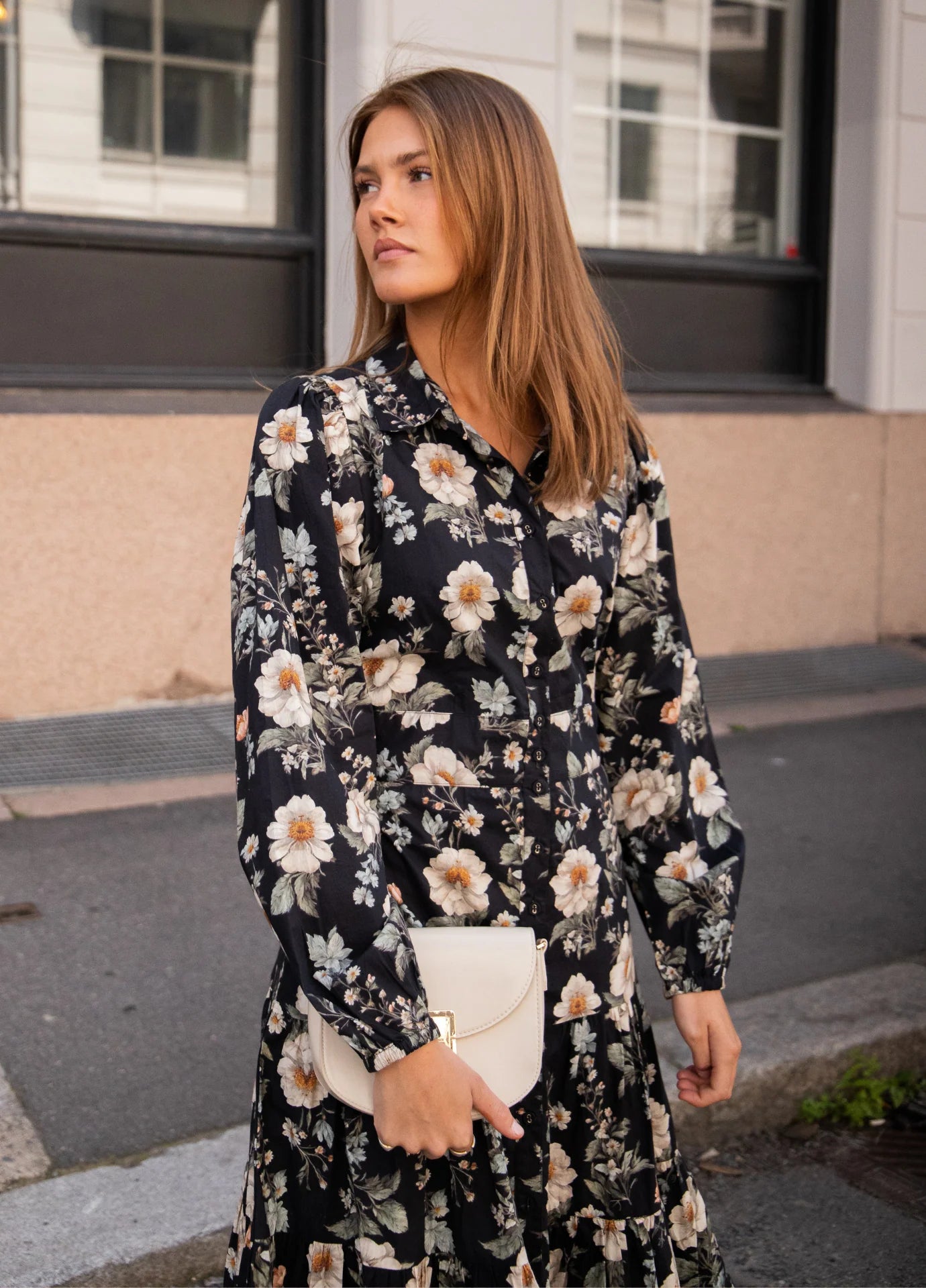 Vicky Midi Dress i Antique Black Poplin er en elegant og tidløs kjole laget av 100% bomullspoplin. Denne kjolen er perfekt for spesielle anledninger, og dens klassiske design gjør den til et must-have i garderoben.