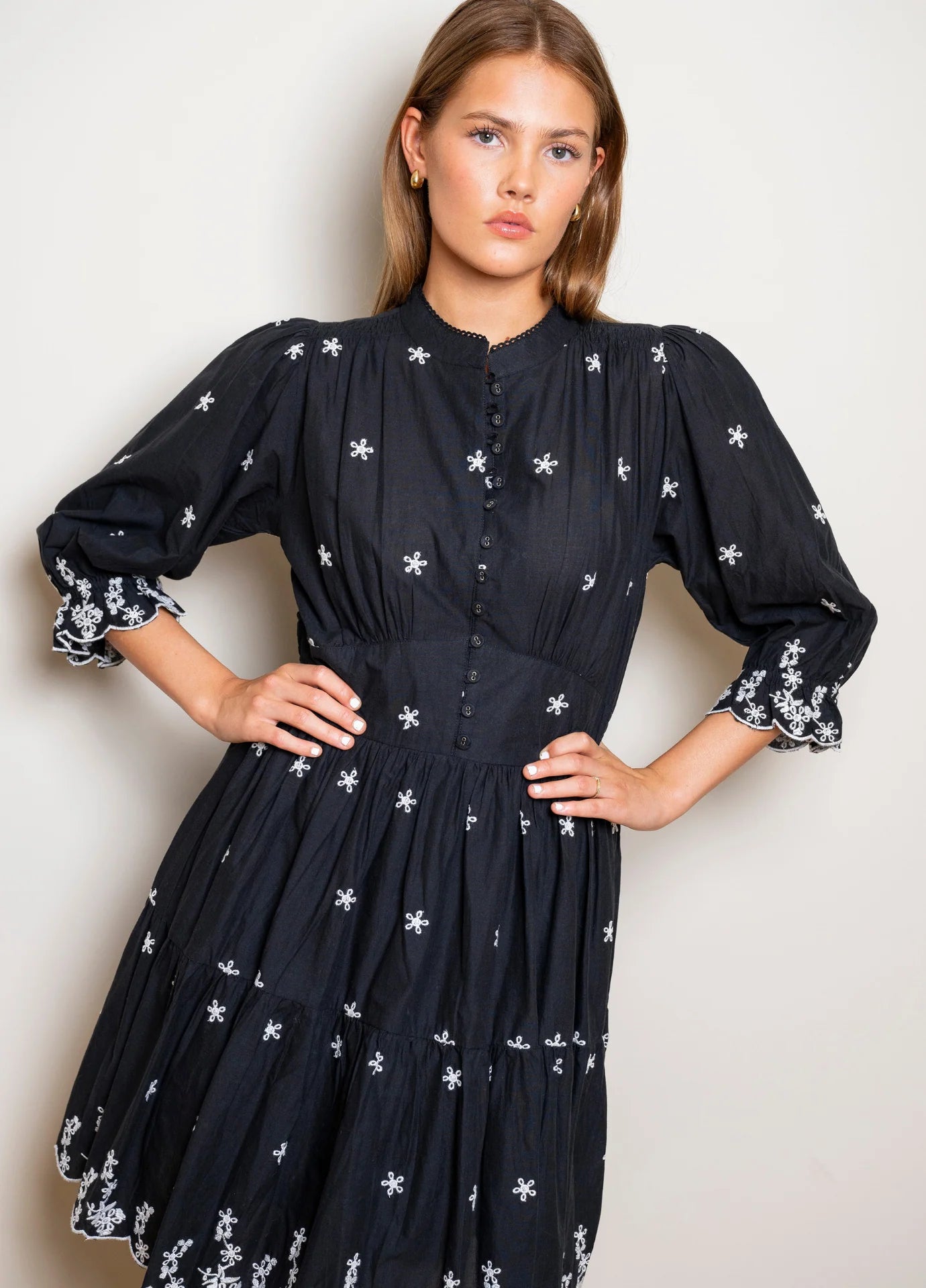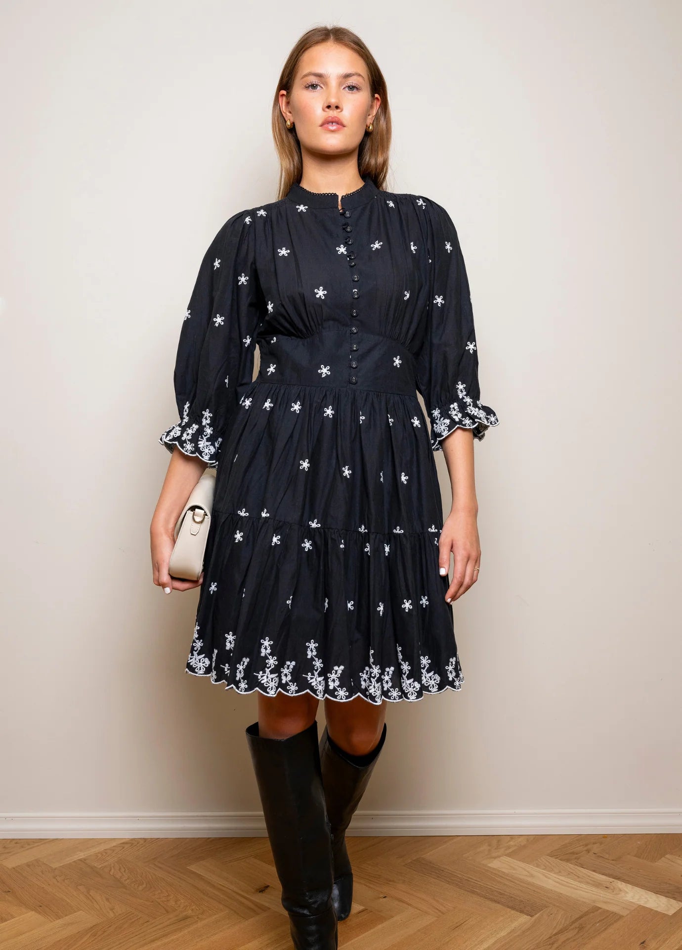 Scarlett Dress Noir Embroidery er en elegant kjole laget av 100% bomull, perfekt for de som ønsker å tilføre et snev av stil til garderoben. Den delikate broderingen gir kjolen et unikt preg, noe som gjør den ideell for spesielle anledninger.