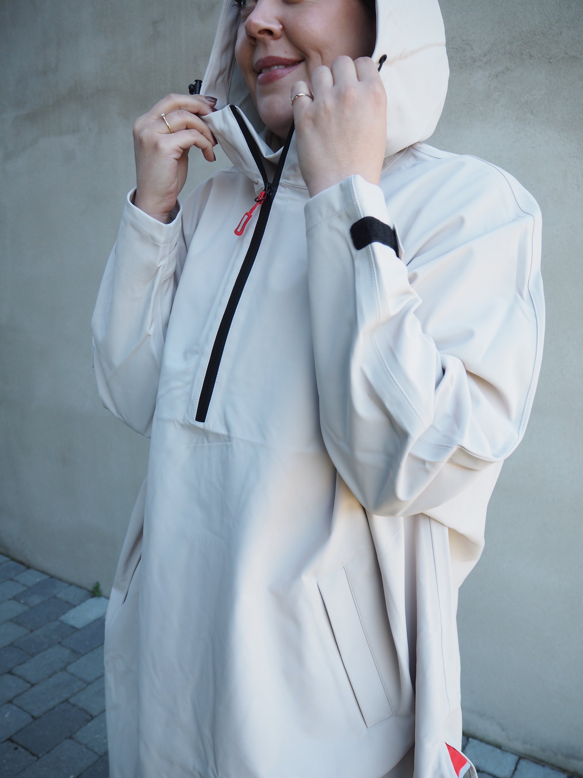 Teknisk regnponcho med lommer.