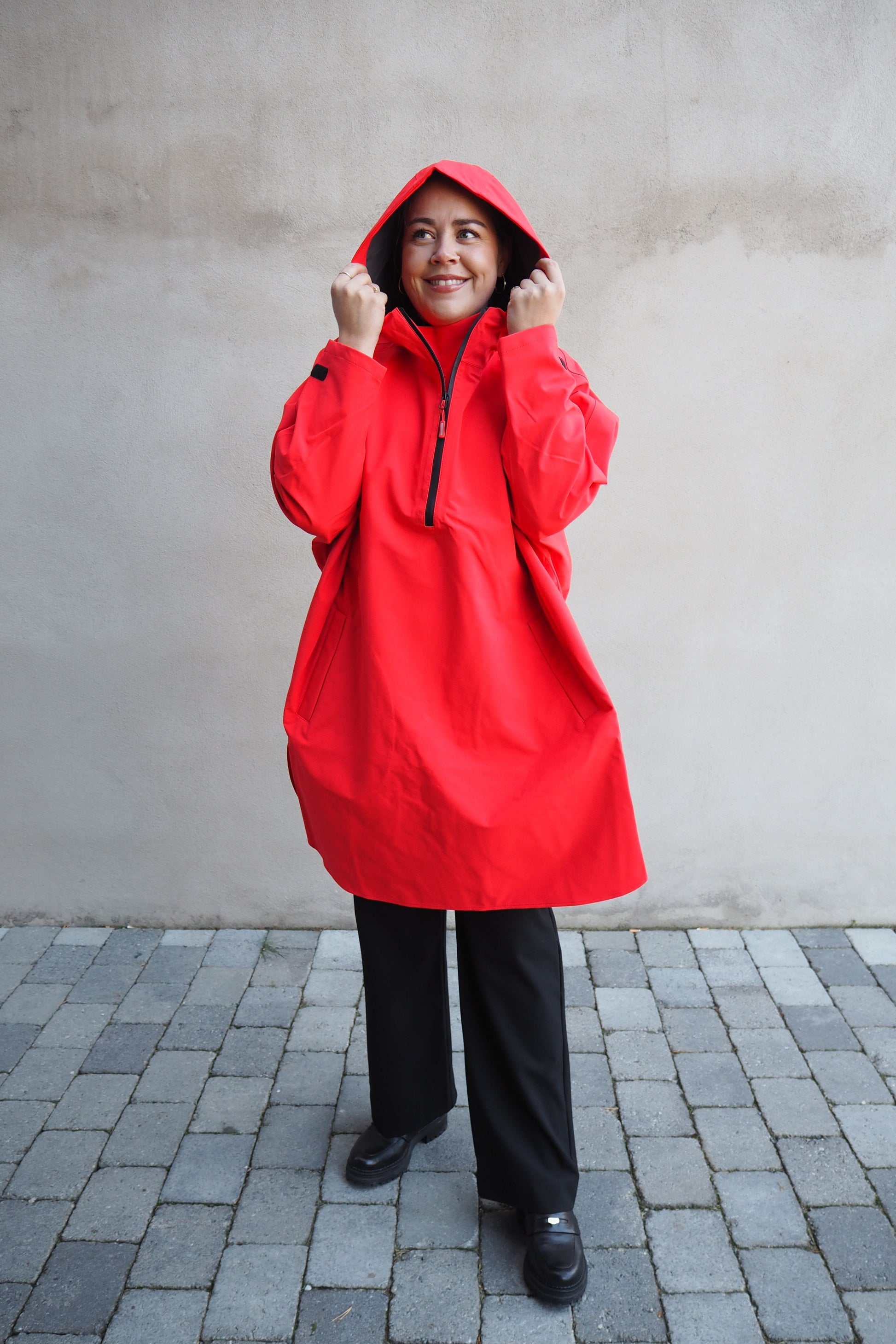 Teknisk regnponcho med lommer.