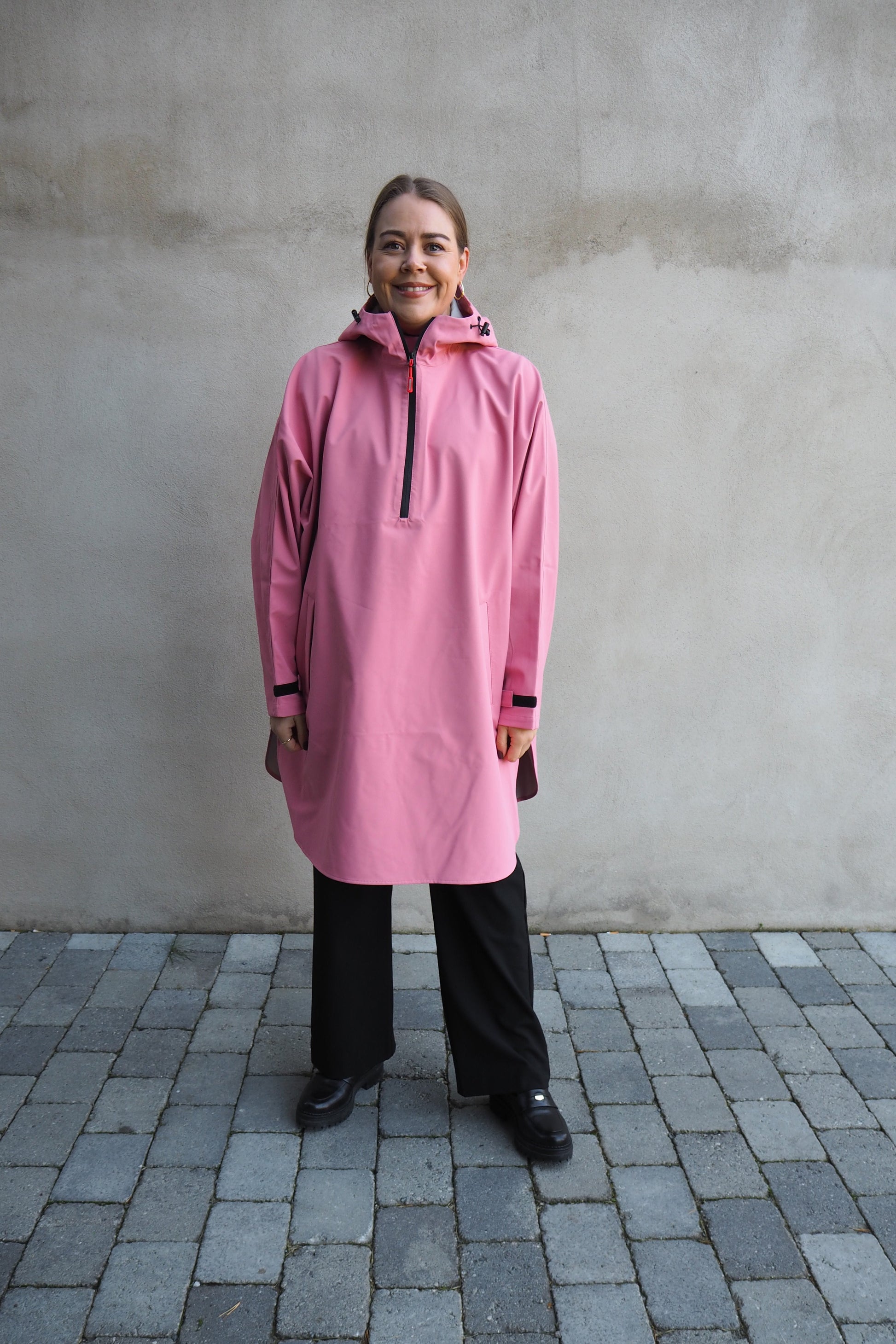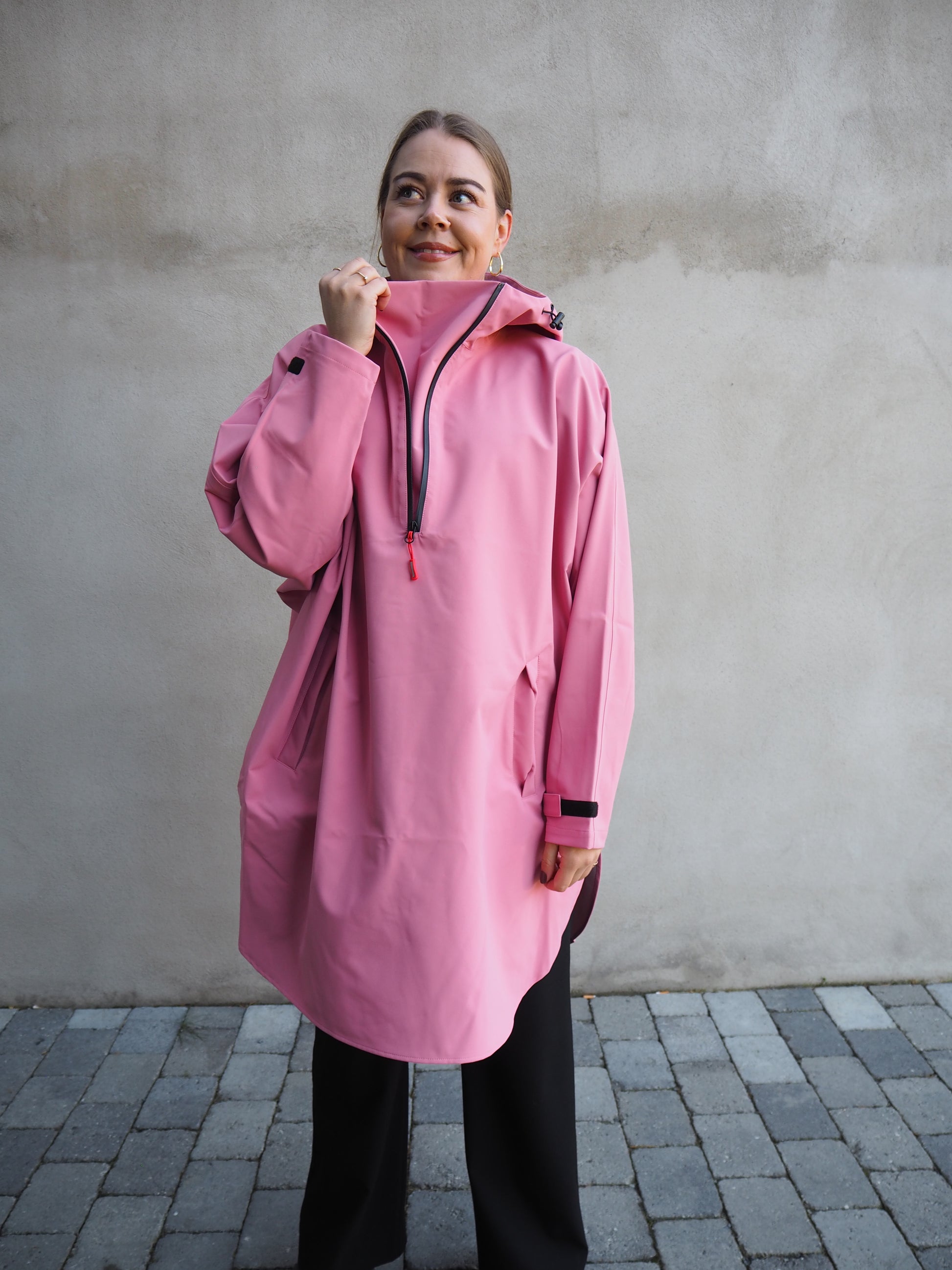 Teknisk regnponcho med lommer.