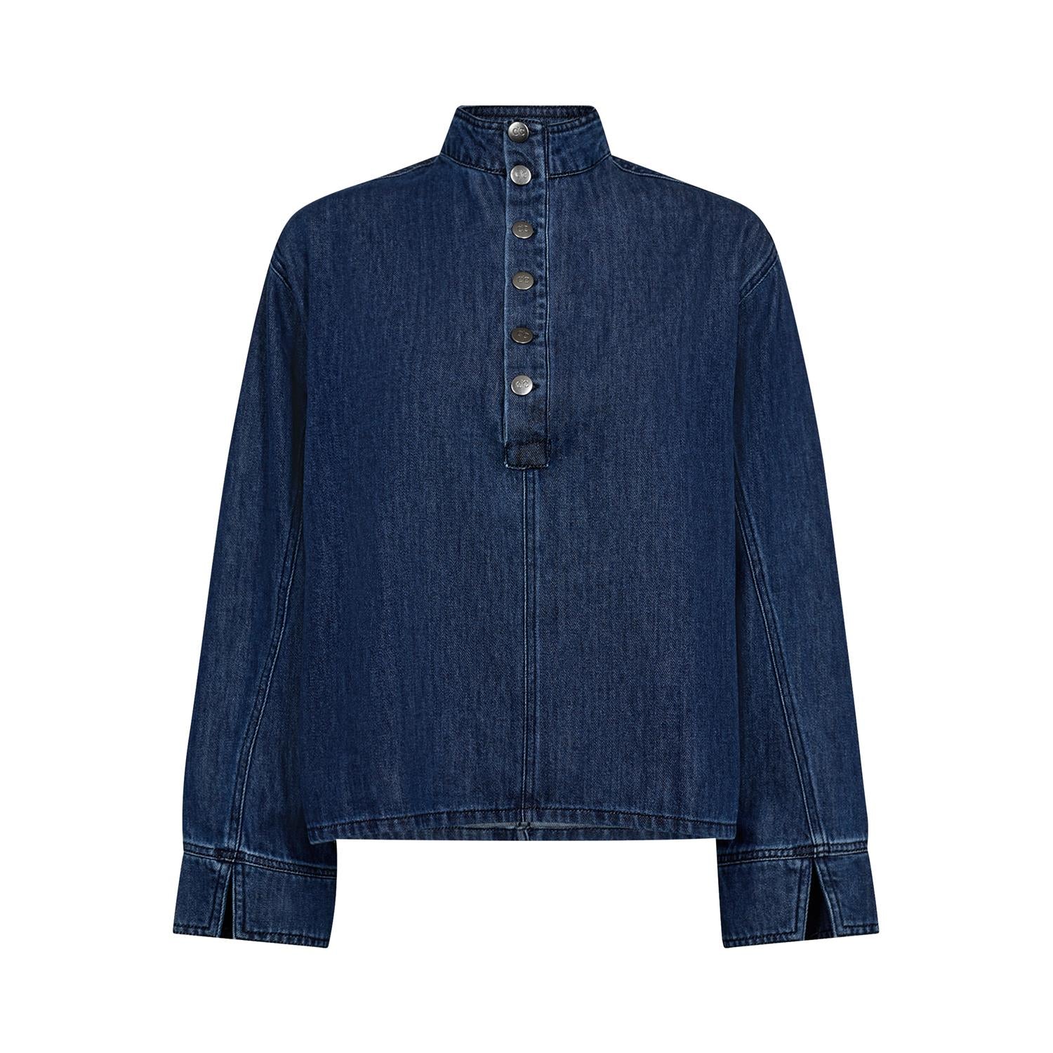 AzminaCC Denim Placket Blouse er en stilren og komfortabel bluse laget av en blanding av bomull og lyocell. Den denimblå fargen gir et tidløst preg, perfekt for en avslappet stil.