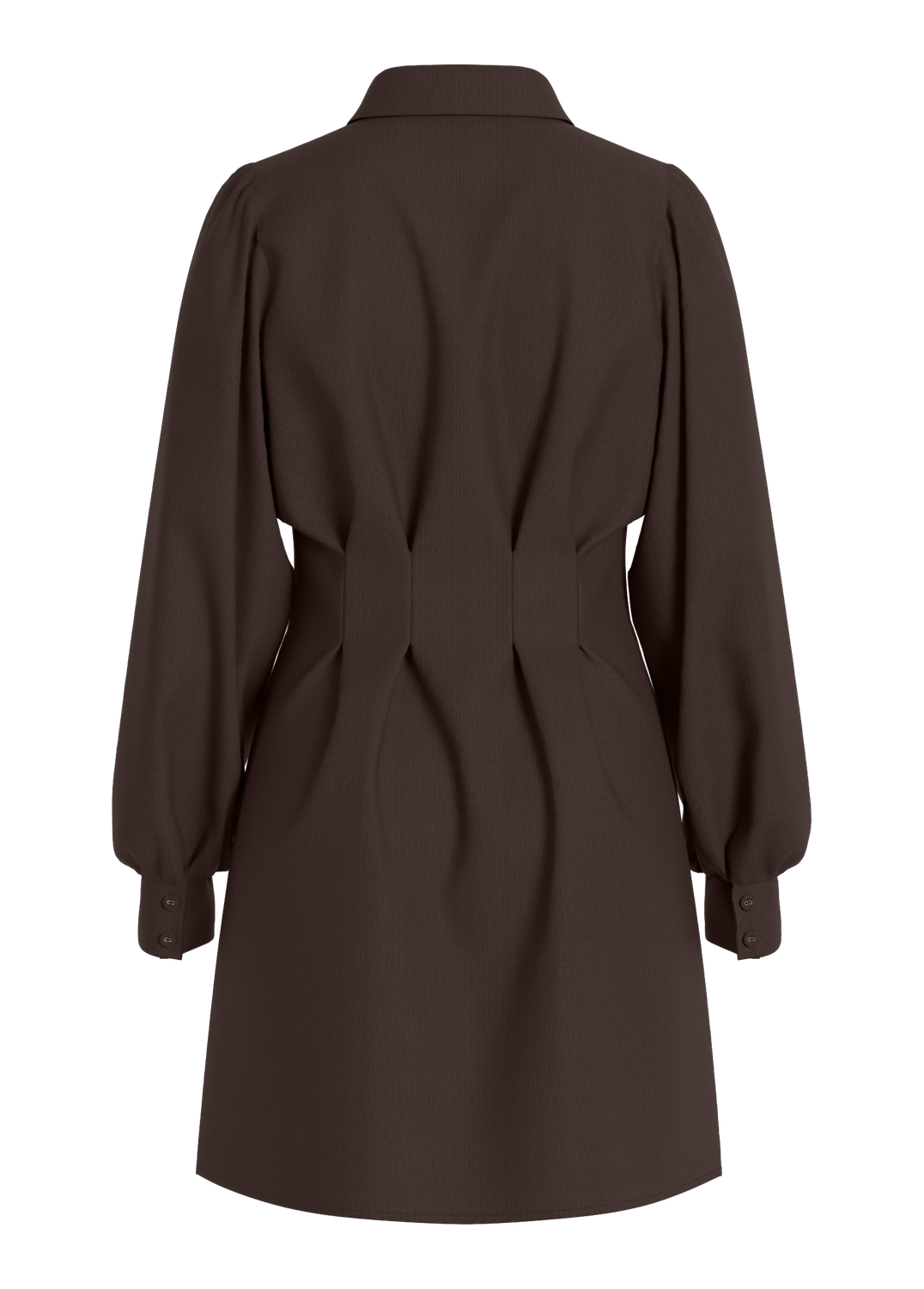 VICORDU L/S skjortekjole kombinerer stil og komfort med sitt tidløse design. Den mørkebrune fargen gir et elegant preg, mens de vevde stoffene sikrer holdbarhet og fargefasthet. Perfekt for en sofistikert look.