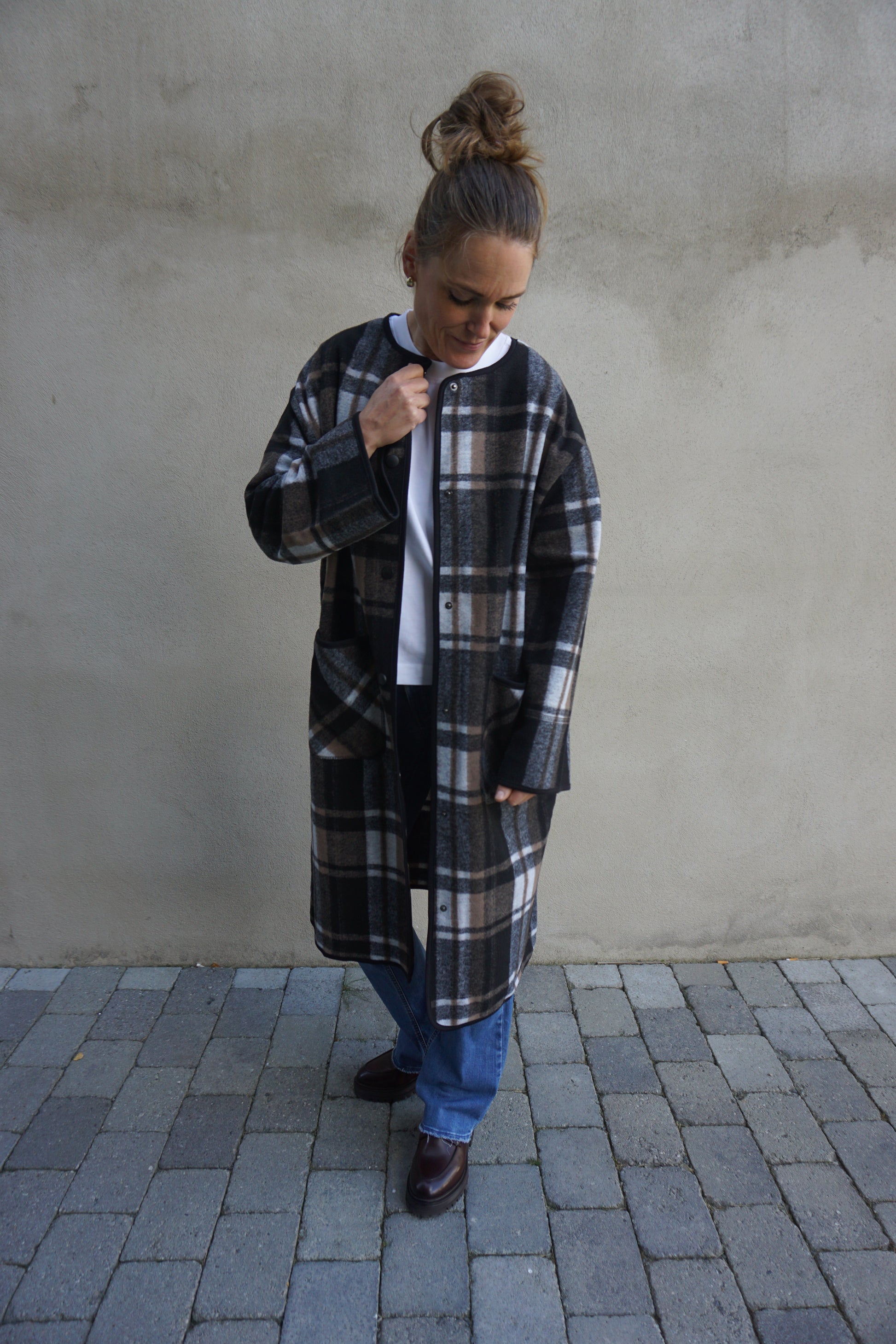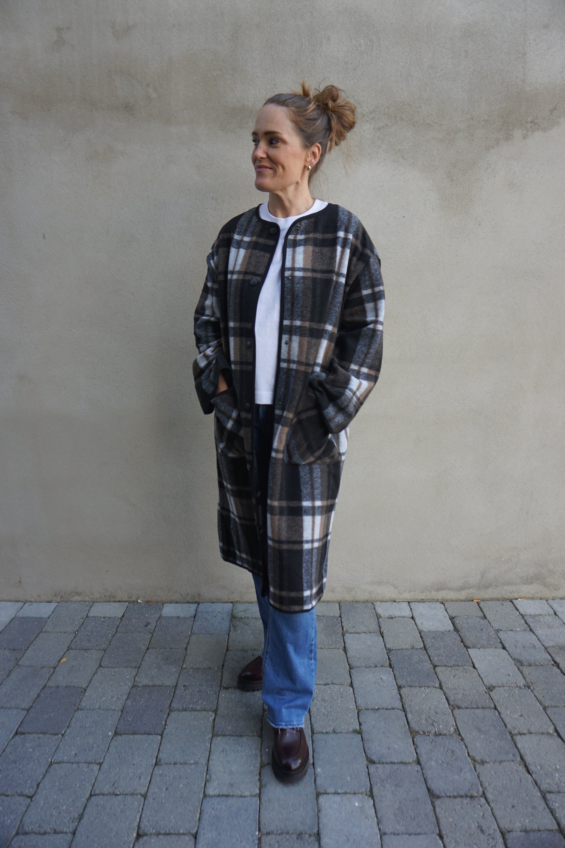 SC-VOCAL 2-jakken er laget av 100 % resirkulert polyester. Den har rund krage, knappelukking og en lang lengde med rutete trykk og to lommer foran. Bruk den over avslappede antrekk eller kombiner den med skreddersydde bukser for et raffinert utseende.