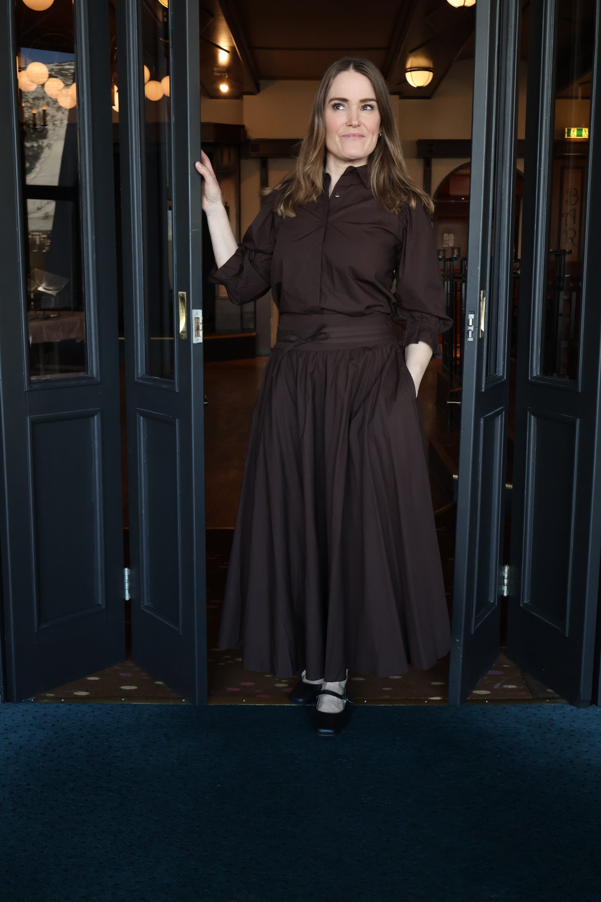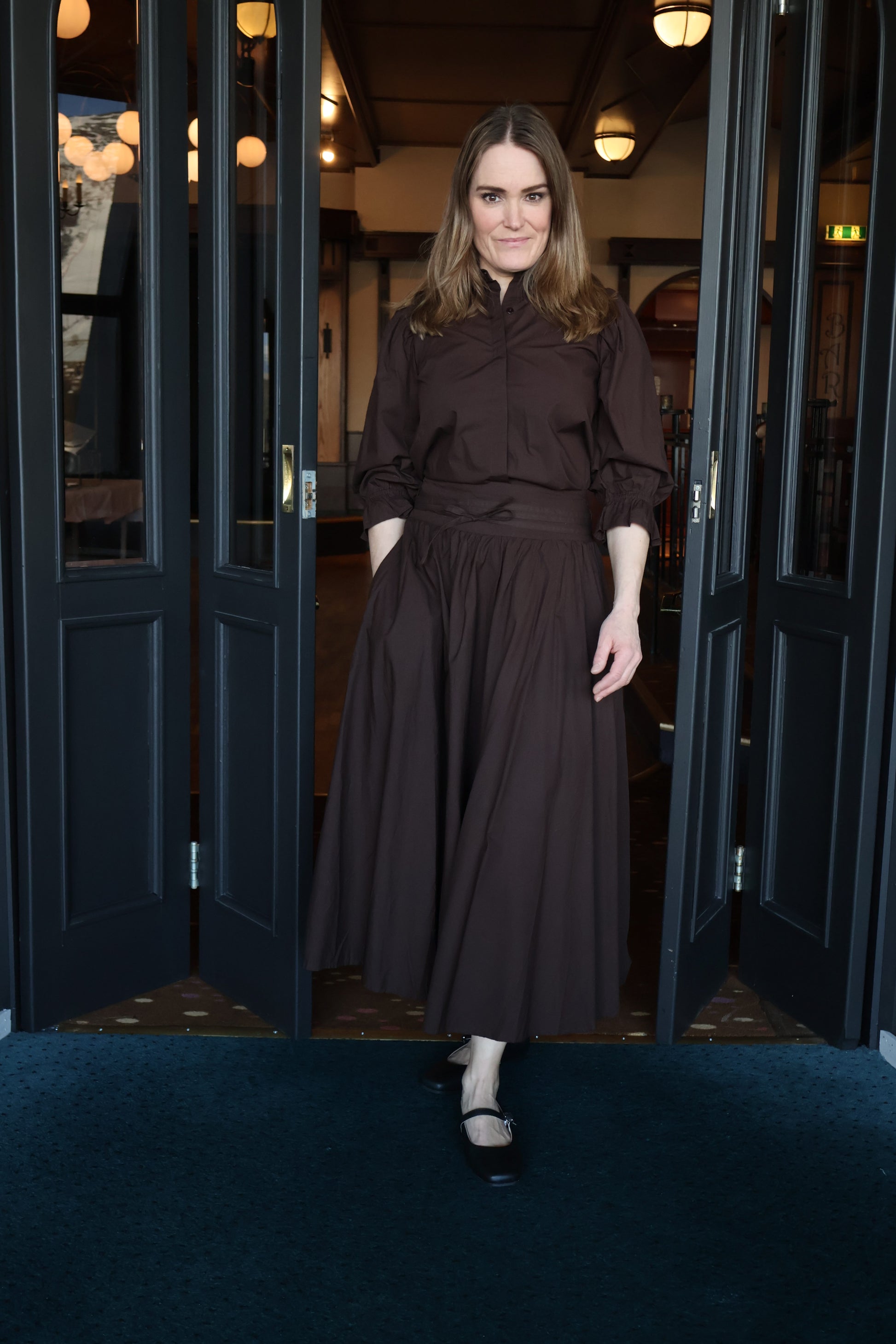 Modellen er 169 cm høy og har størrelse XS i Amy Shirt Chocolate