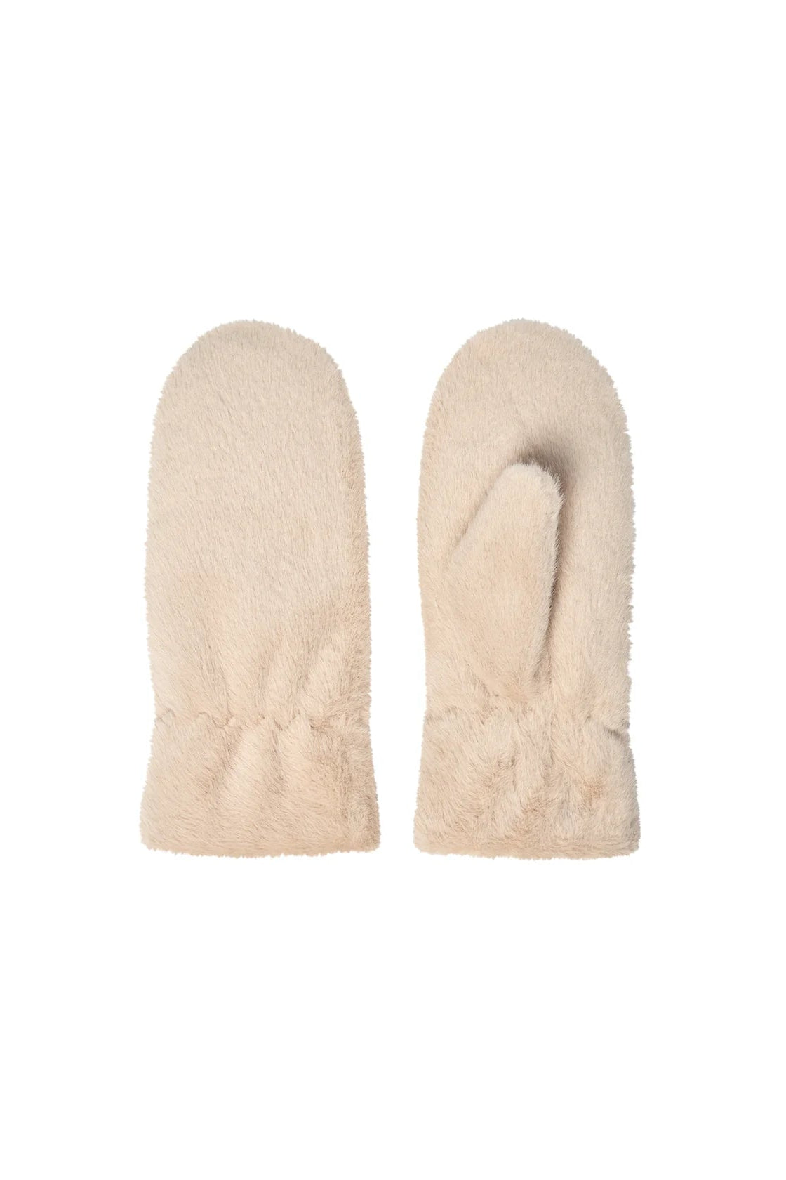 Soyaconcept presenterer Sc-Vendla 1, et par votter med myk, plysjaktig overflate som gir god komfort. Den nøytrale sandfargen passer fint til forskjellige antrekk, mens materialet holder hendene varme. Vottene har en elastisk kant ved håndleddet som sikrer god passform. Den myke overflaten føles behagelig mot huden, og materialet tørker raskt når det blir vått