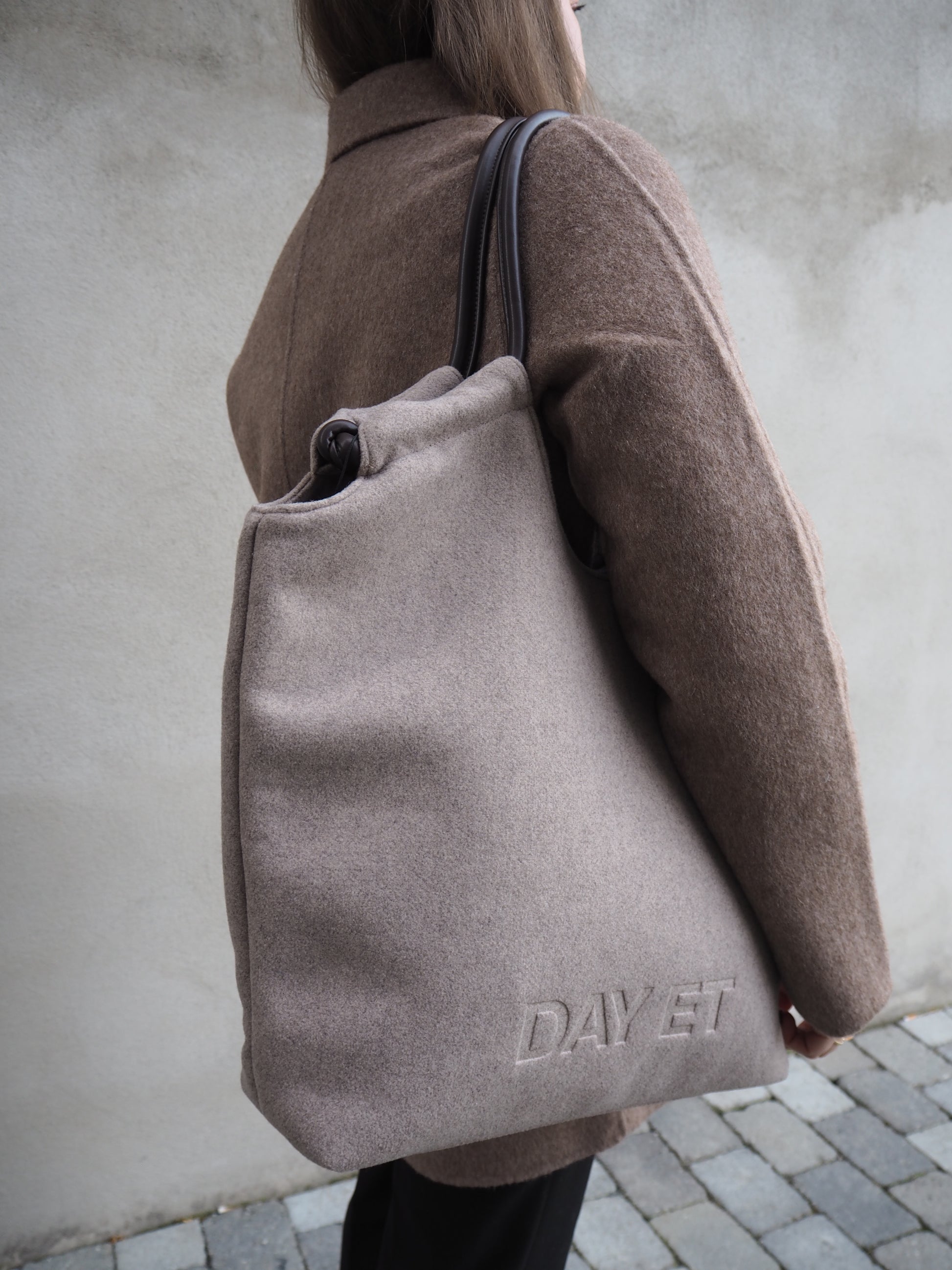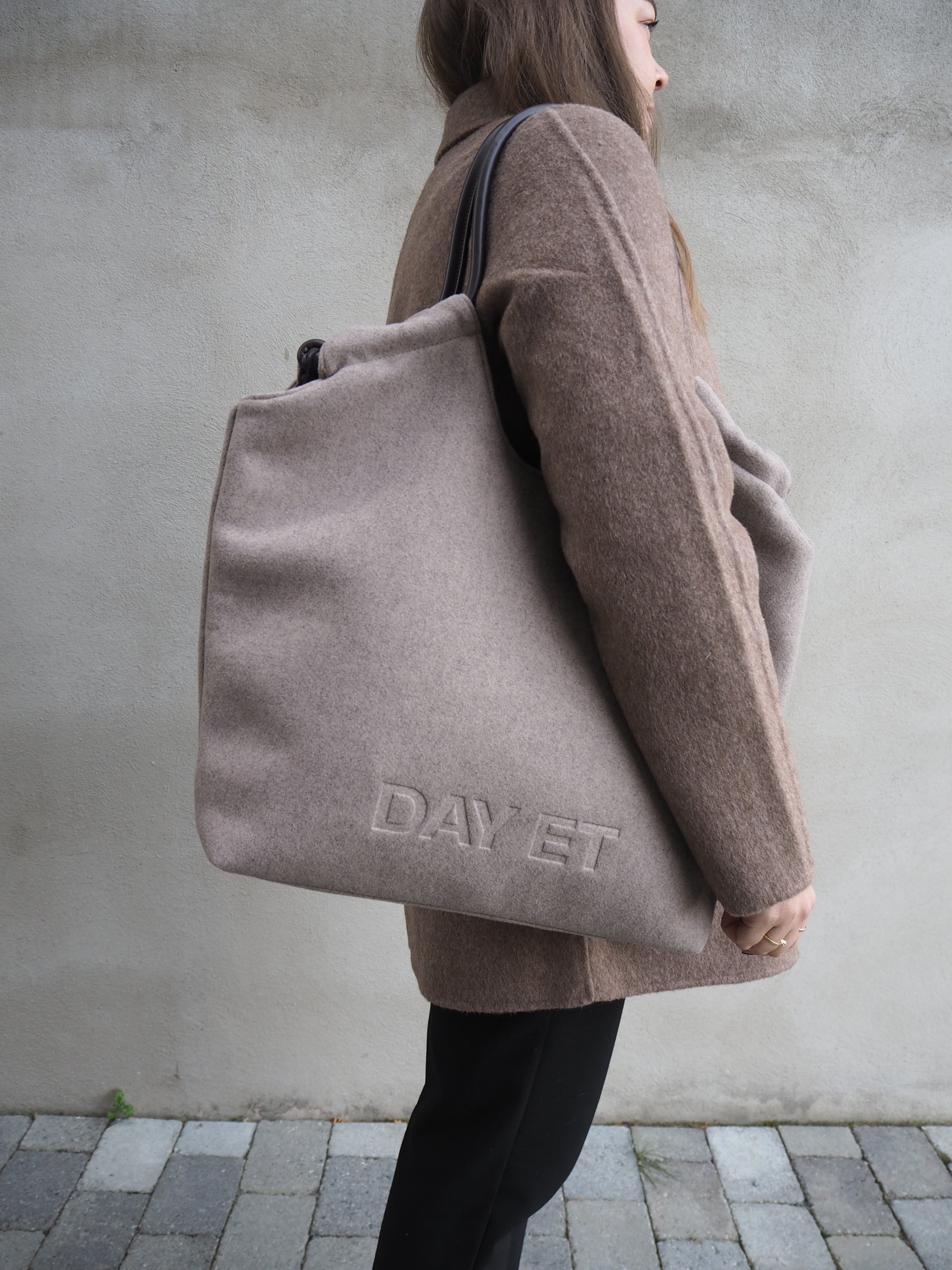 Denne totebagen er alt du vil ha over skulderen akkurat nå. Den romslige fasongen gir deg plass til både laptop, lunsj og små nødvendigheter, mens det myke ullmaterialet gir et varmt og elegant uttrykk som løfter hele antrekket. Håndtak i kunstlær med subtile knutedetaljer setter prikken over i-en – akkurat passe særpreg uten å rope høyt. En perfekt miks av funksjon og stil, enten du er på vei til kontoret eller bare skal ut og gjøre ærender.