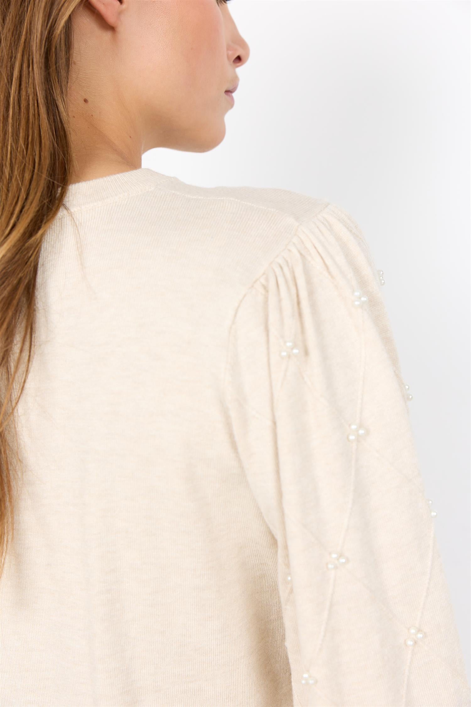SC-DOLLIE 802 er en stilren og komfortabel pullover i en delikat kremmelange-farge. Denne genseren er perfekt for hverdagsbruk og gir et elegant preg til enhver garderobe.