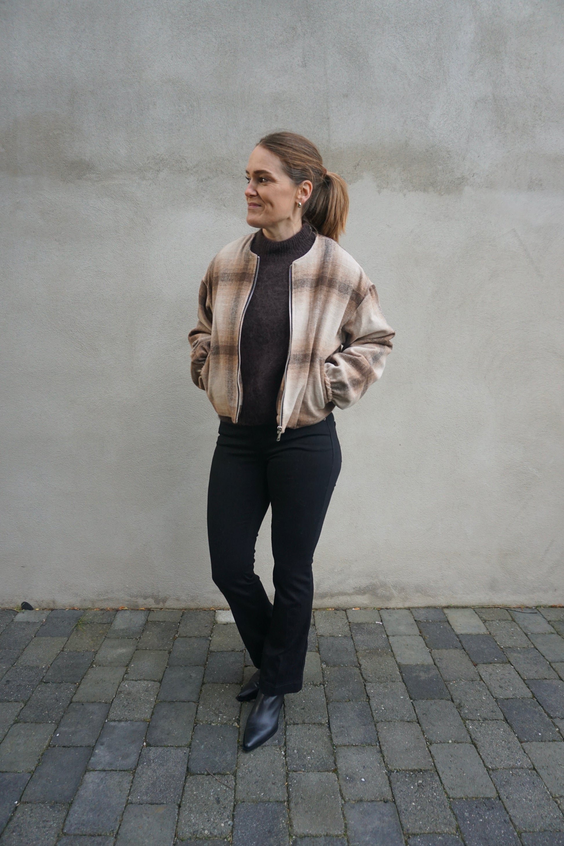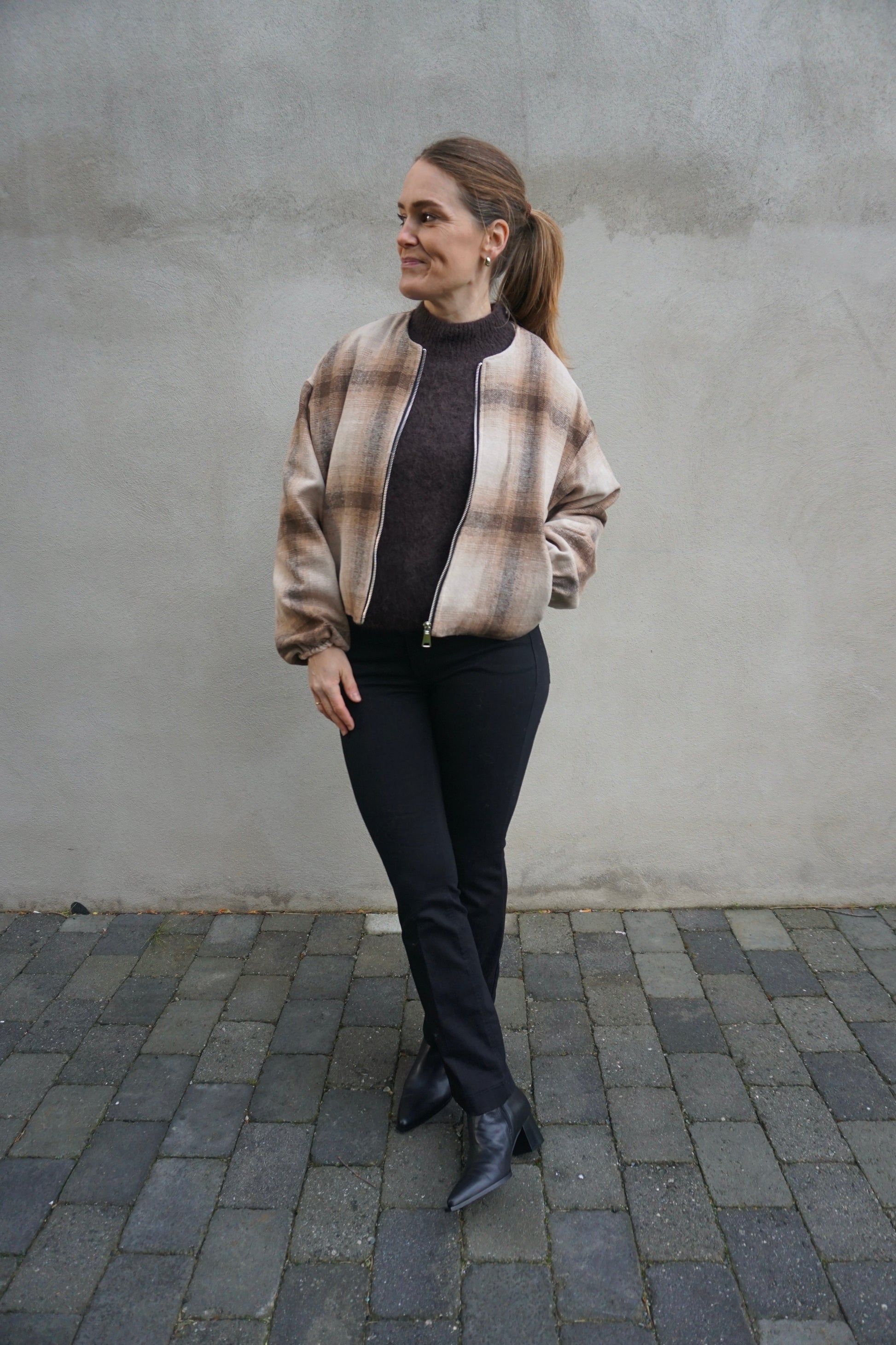 Massimo Rutet Jakke er en stilsikker og myk jakke i et klassisk beige rutemønster.