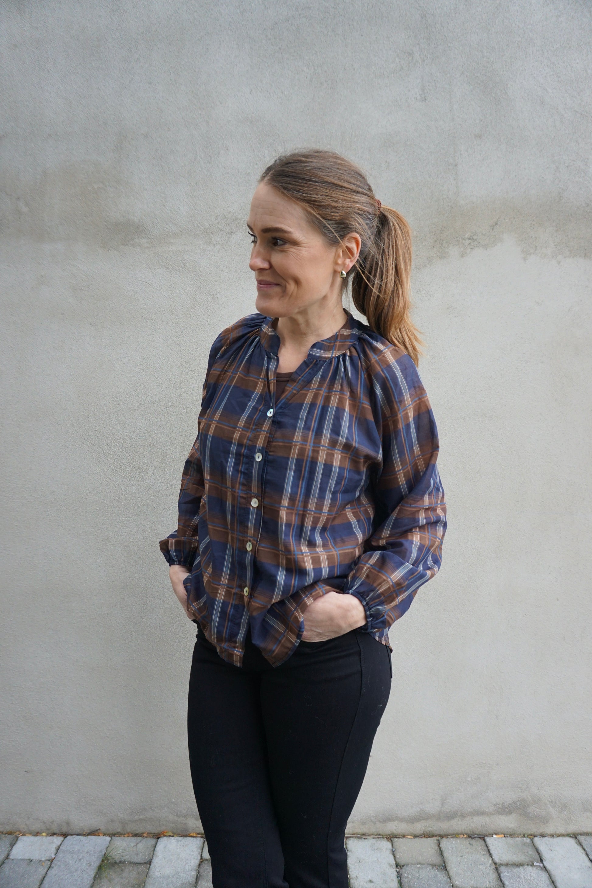 Elegant og lett bluse fra Massimo i 100% myk bomull. Kathrine-modellen har et klassisk rutemønster i duse blå og brune toner, som gir et tidløst og stilrent uttrykk.