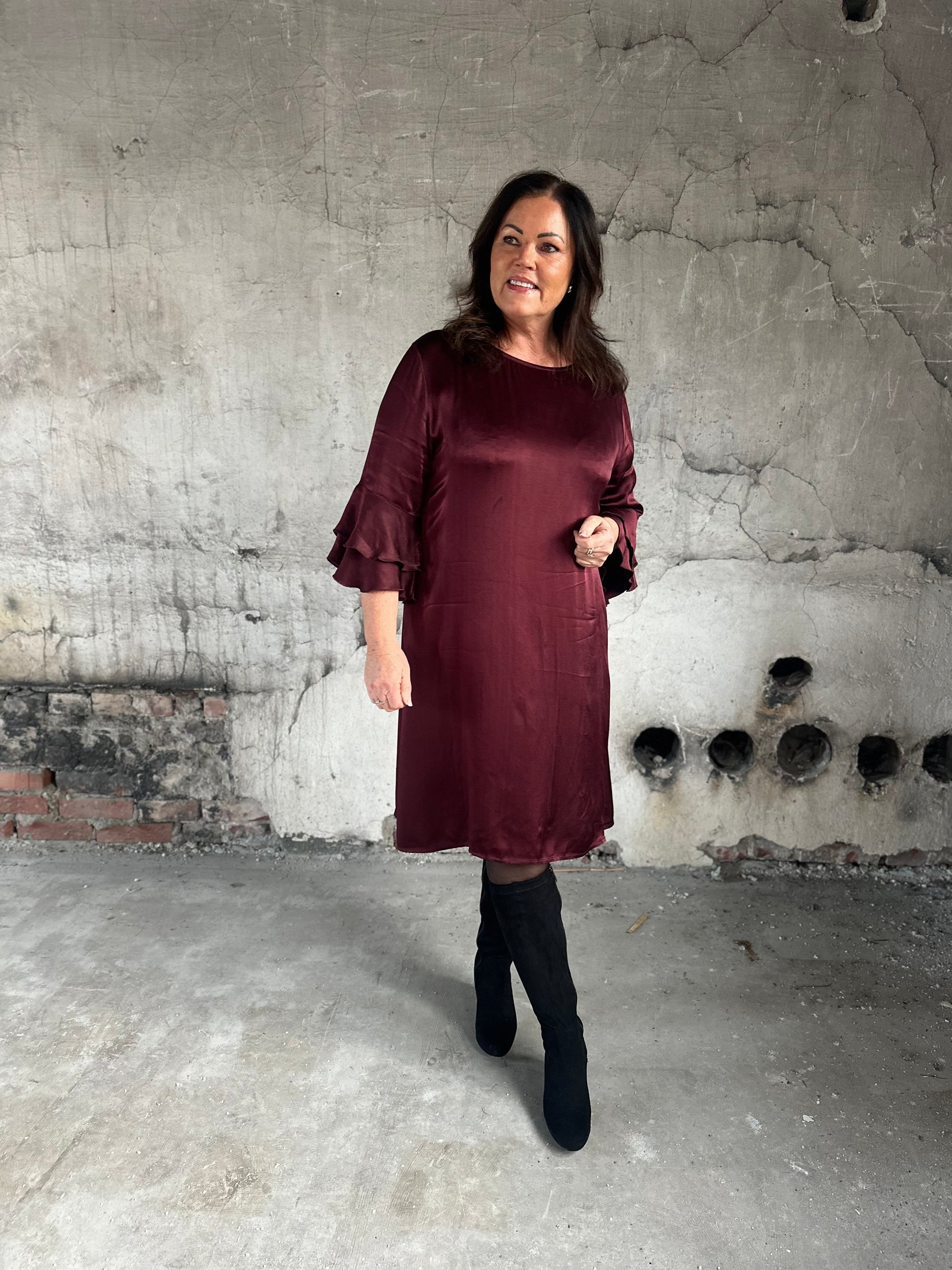 Modellen har trekvart ermer med delikate volangdetaljer og en avslappet passform som gir et sofistikert uttrykk.