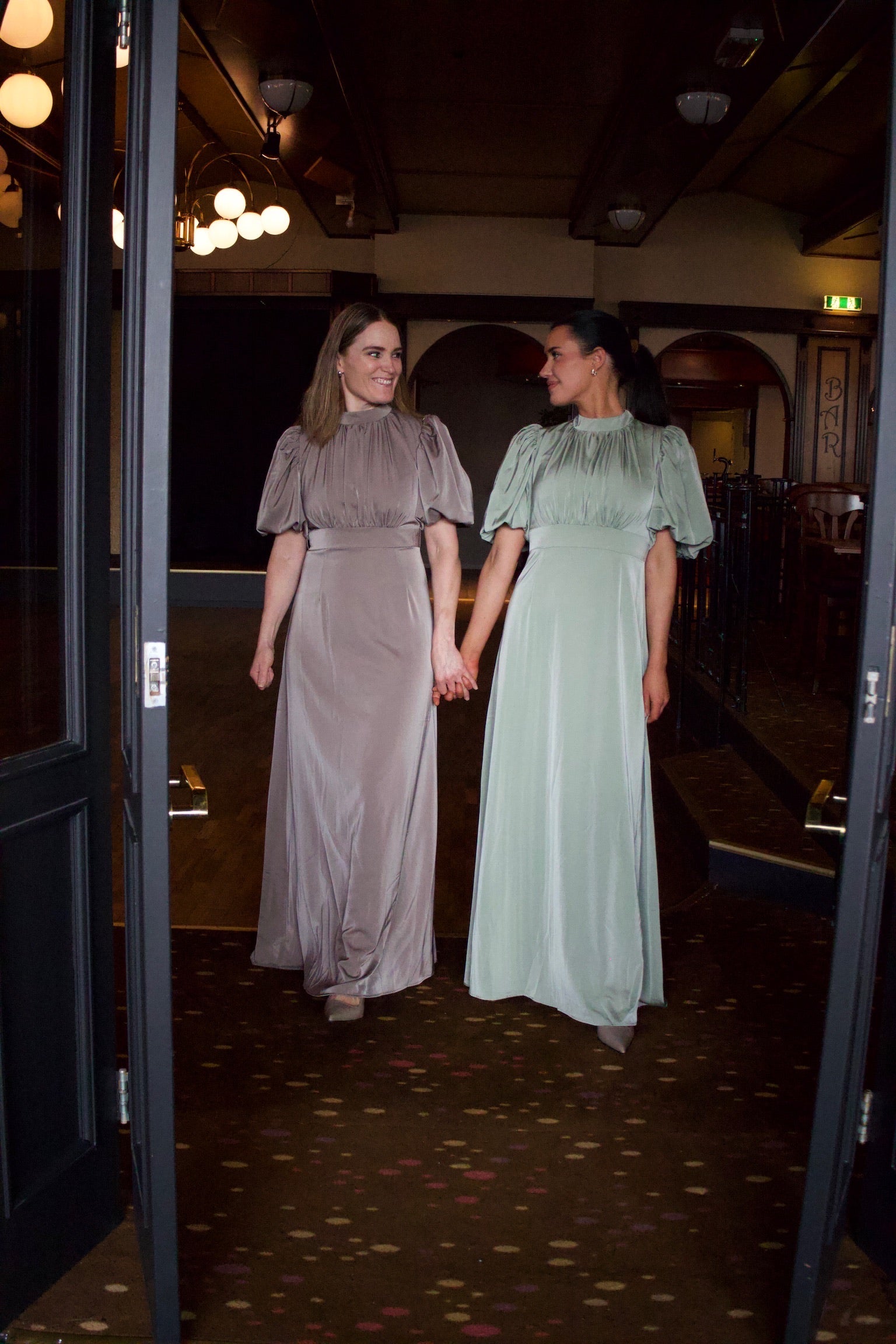 Vær forsiktig med bruk av ringer/armbånd sammen med kjolen. Stoffet kan oppfattes som skjørt, og tåler ikke at skarpe gjenstander riper borti stoffet. Det kan skape små merker i stoffet på kjolen.