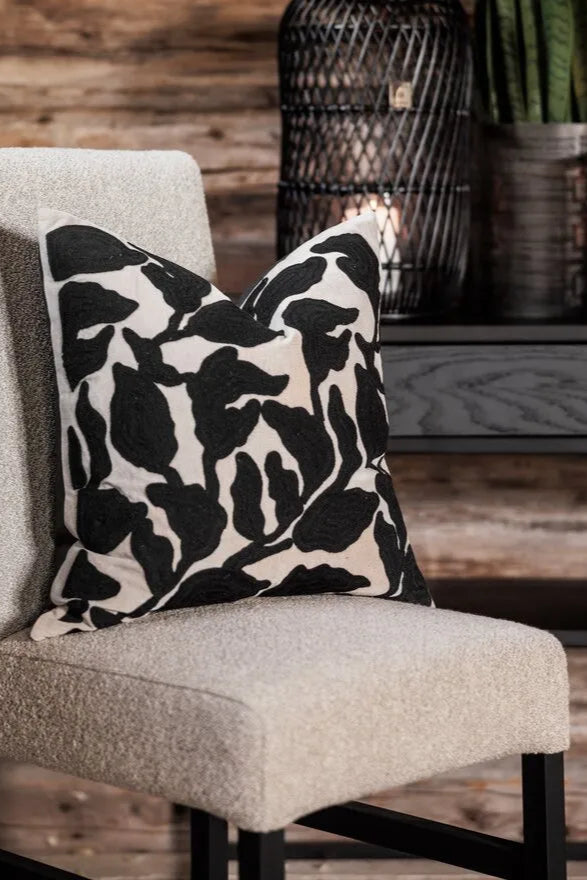 Portland Putetrekk i bomull natur med svart broderi og svart bakside 50X50cm.