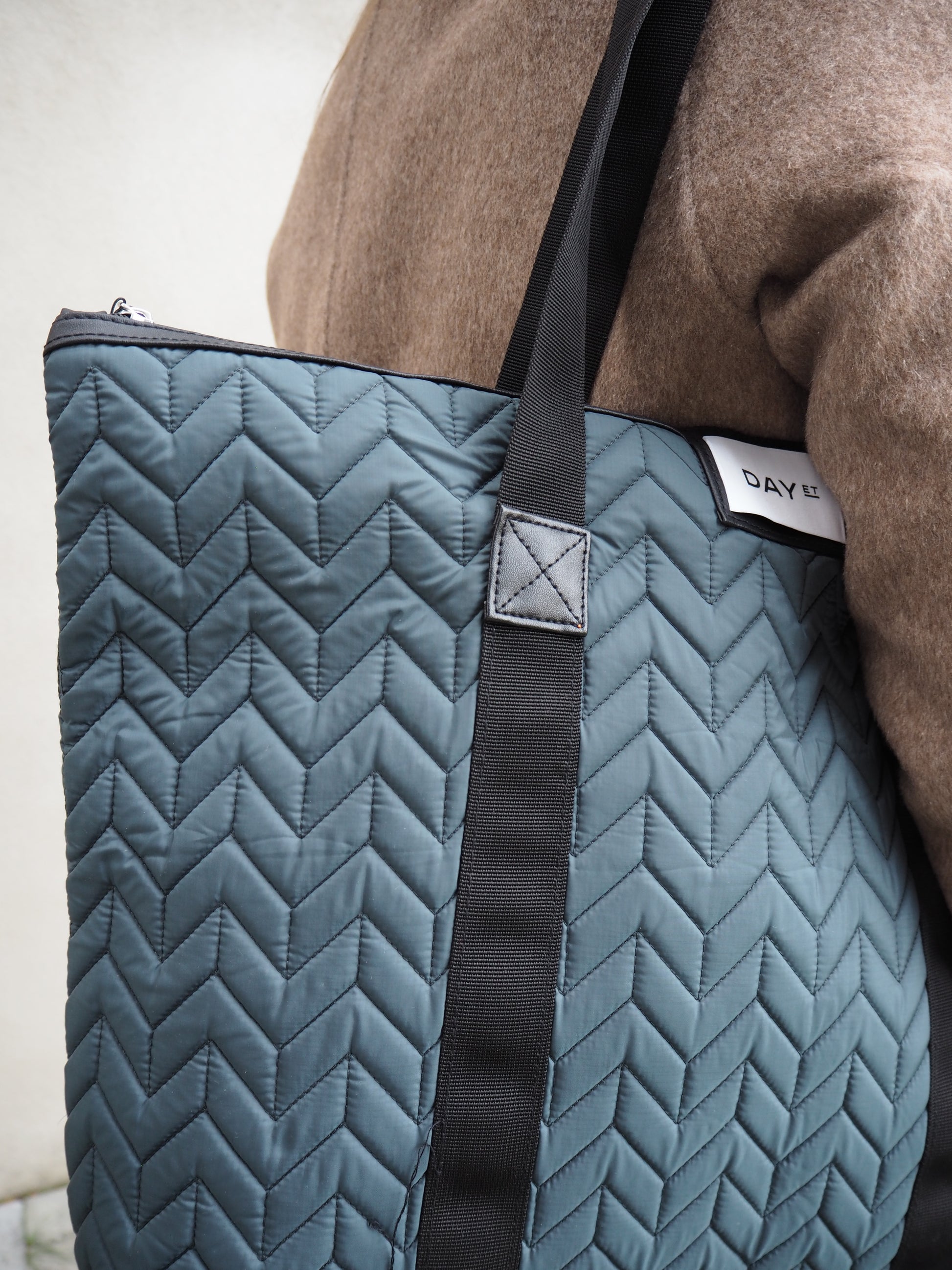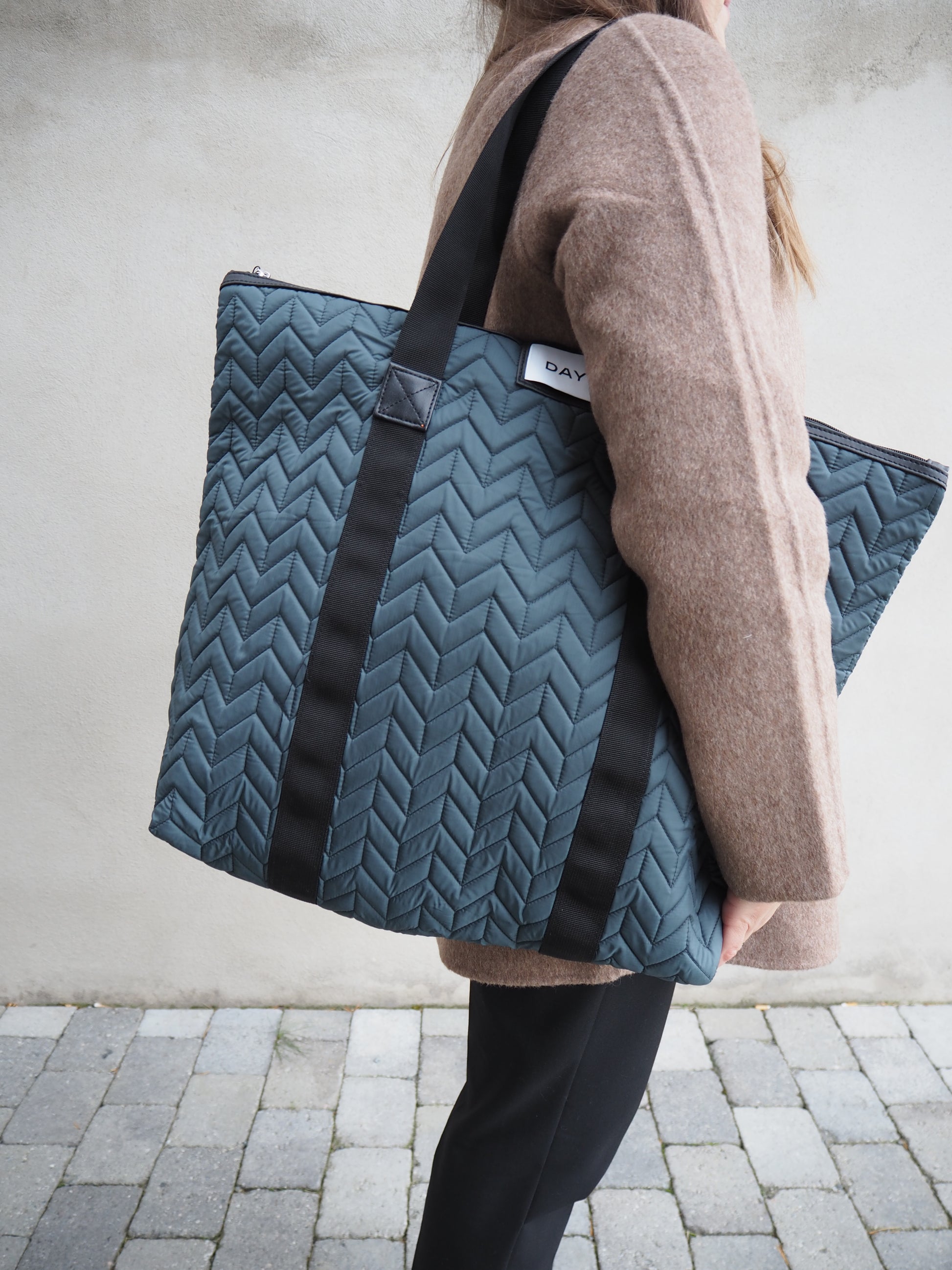 Det ytre stoffet og det indre fôret til denne vesken er laget av 100 % sertifisert resirkulert materiale. Den lukkes med glidelås og i hovedrommet er det plass til datamaskin. Innvendig har den en glidelåslomme hvor du kan oppbevare småting. Vesken er designet i et sporty quilt, og den har også en avtagbar og justerbar stropp, slik at du kan bære vesken både som crossbody og over skulderen.